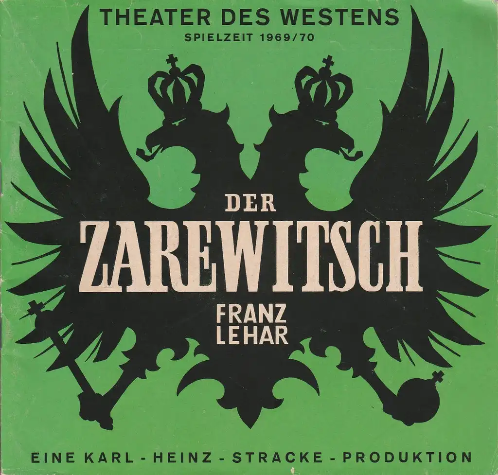 Theater des Westens, Karl-Heinz Stracke: Programmheft Der Zarewitsch. Operette von Bela Jenbach und Hans Reichert. Spielzeit 1969 / 70.