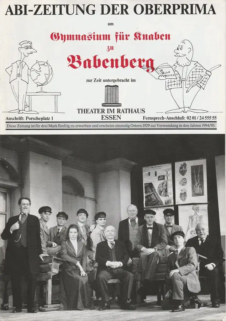 Theater im Rathaus Essen, Birgit Landgraf, Joachim Landgraf, Annette Dabs, Maria Mommartz, Jutta Ungelenk-Stamp ( Fotos ), Julia Reimann ( Zeichnungen ): Programmheft Heinrich Spoerl DIE FEUERZANGENBOWLE Spielzeit 1994 / 95.