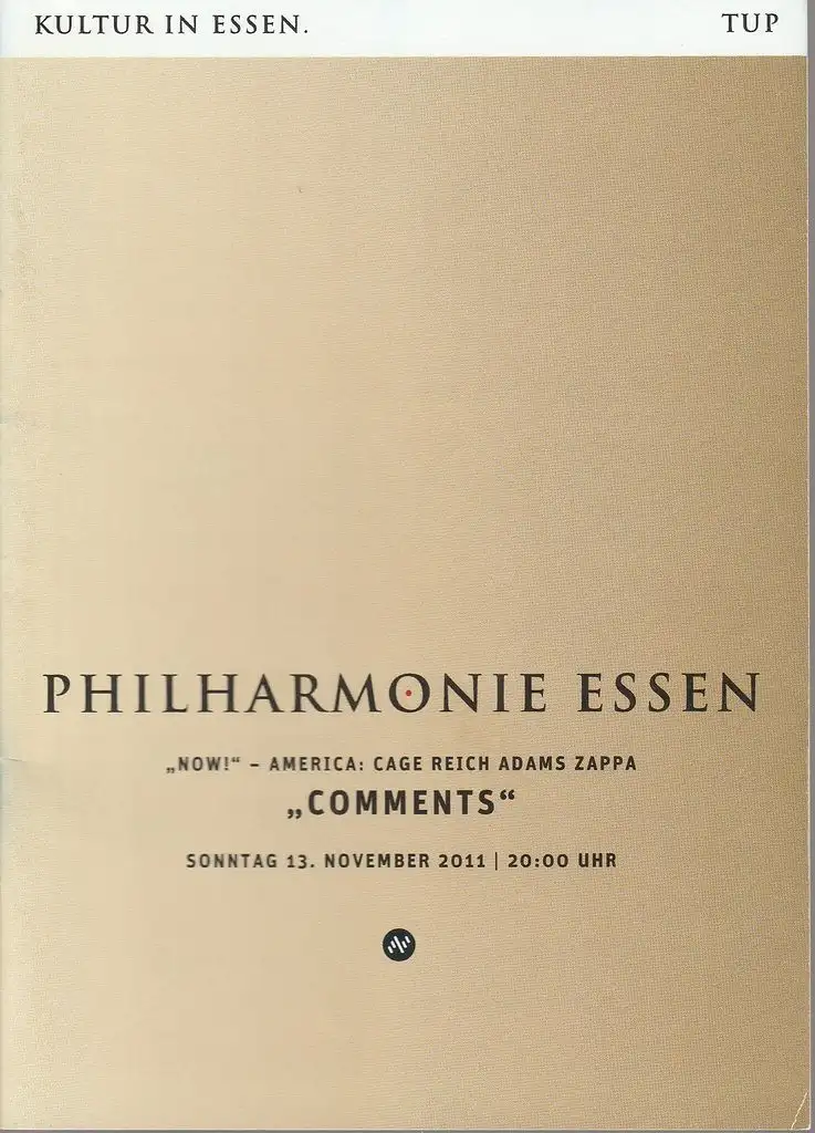 Titel: Programmheft Ensemble folkwang modern COMMENTS 13. November 2011 Philharmonie Essen