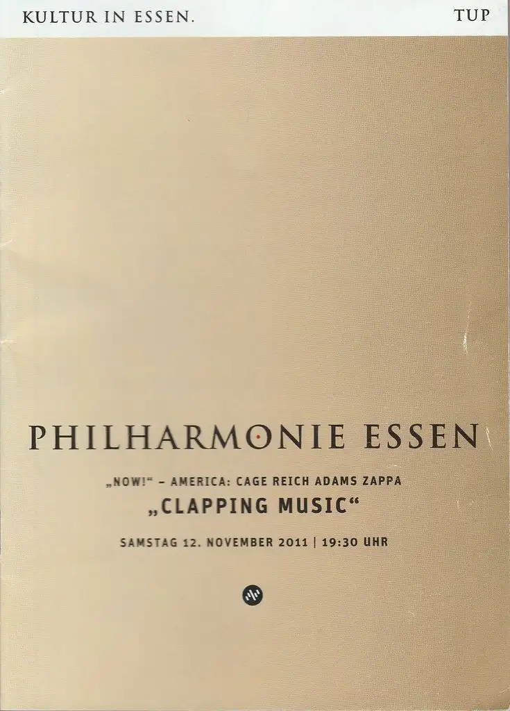 Theater und Philharmonie Essen, Johannes Bultmann, Berger Bergmann, Uta Appelbaum: Programmheft WDR Sinfonieorchester Köln CLAPPING MUSIC 12. November 2011 Philharmonie Essen.