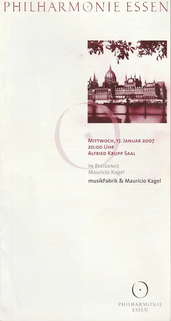 Titel: Programmheft Philharmonie Essen musikFABRIK und MAURICIO KAGEL 17. Januar 2007 Alfred Krupp Saal