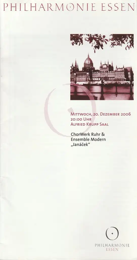 Titel: Programmheft Philharmonie Essen CHORWERK RUHR & ENSEMBLE MODERN JANACEK 20. Dezember 2006 Alfred Krupp Saal