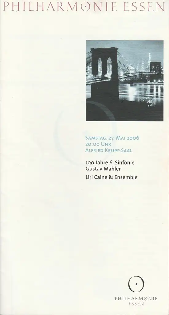 Titel: Programmheft Uraufführung100 JAHRE 6. SINFONIE GUSTAV MAHLER URI CAINE UND ENSEMBLE 27. Mai 2006 Philharmonie Essen Alfred Krupp Saal