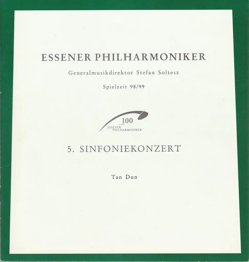 Theater und Philharmonie Essen, Otmar Herren, Stefan Soltesz, Kerstin Schüssler: Programmheft ESSENER PHILHARMONIKER 5. SINFONIEKONZERT TAN DUN 15. und 17. Januar 1999 Spielzeit 1998 / 99.