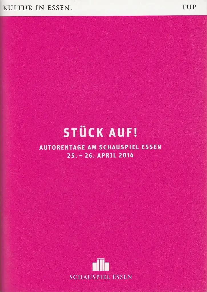 Theater und Philharmonie Essen, Schauspiel Essen, Berger Bergmann, Christian Tombeil, Marc-Oliver Krampe, Jan Frerichs: Programmheft STÜCK AUF! AUTORENTAGE AM SCHAUSPIEL ESSEN 25. - 26. April 2014.