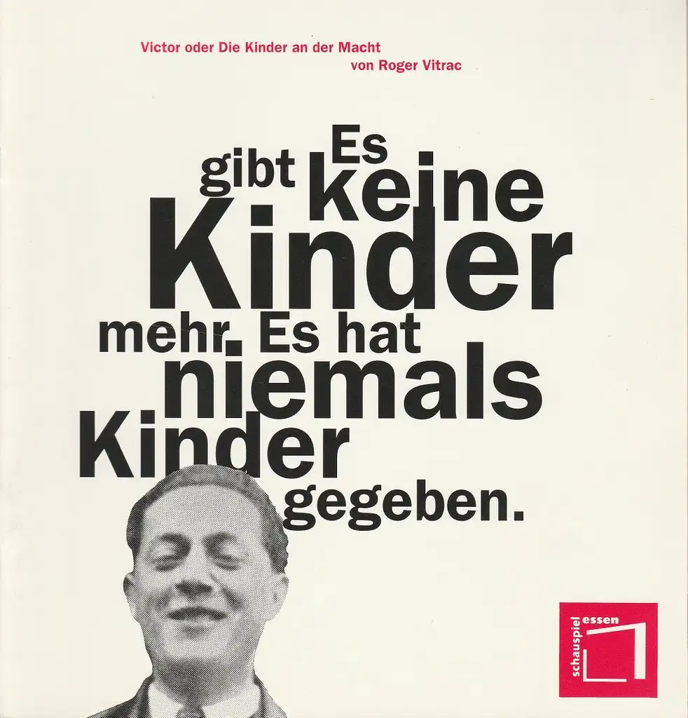 Theater & Philharmonie Essen, Schauspiel Essen, Jürgen Bosse, Ellen Brüwer, Klaus Lefebvre ( Aufführungsfotos ): Programmheft Roger Vitrac VICTOR ODER DIE KINDER AN DER MACHT Premiere 11. März 1995 Grillo Theater Spielzeit 1994 / 95.