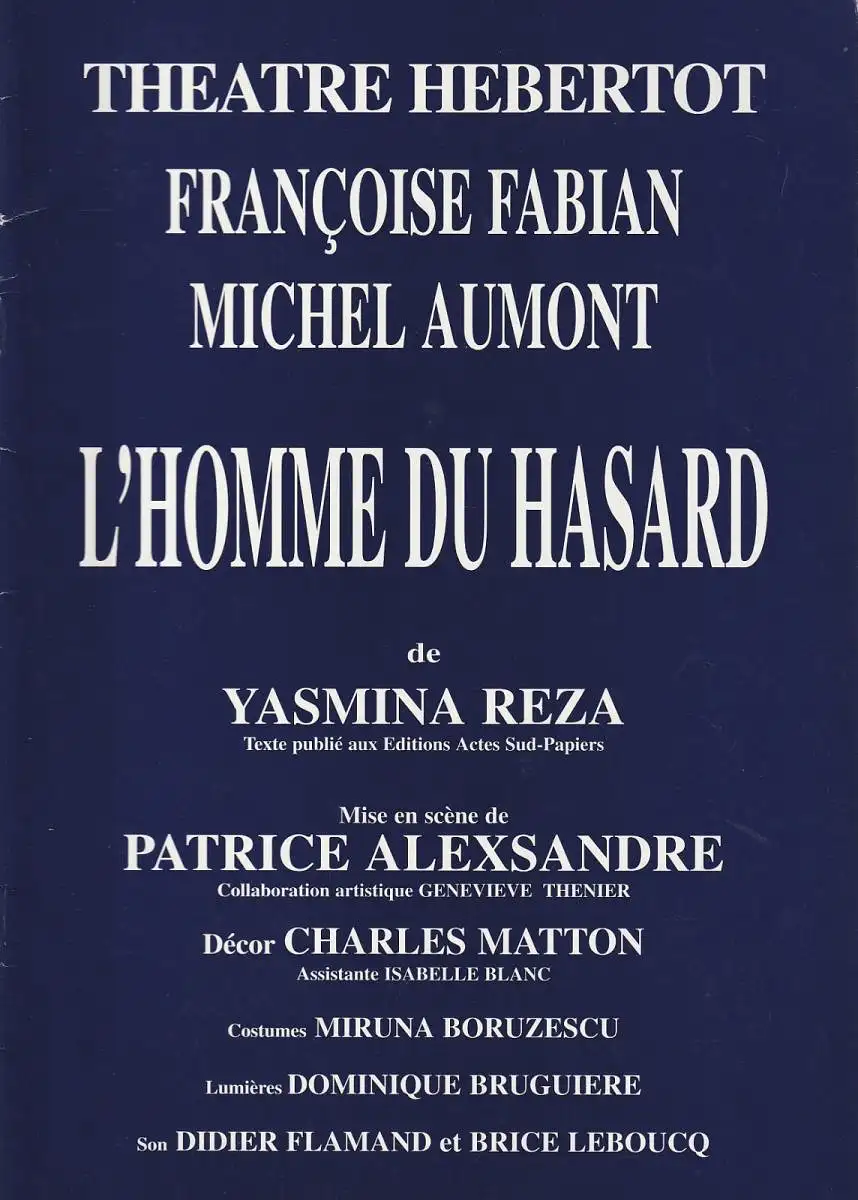 Theatre Hebertot: Programmheft Yasmina Reza L'HOMME DU HASARD.