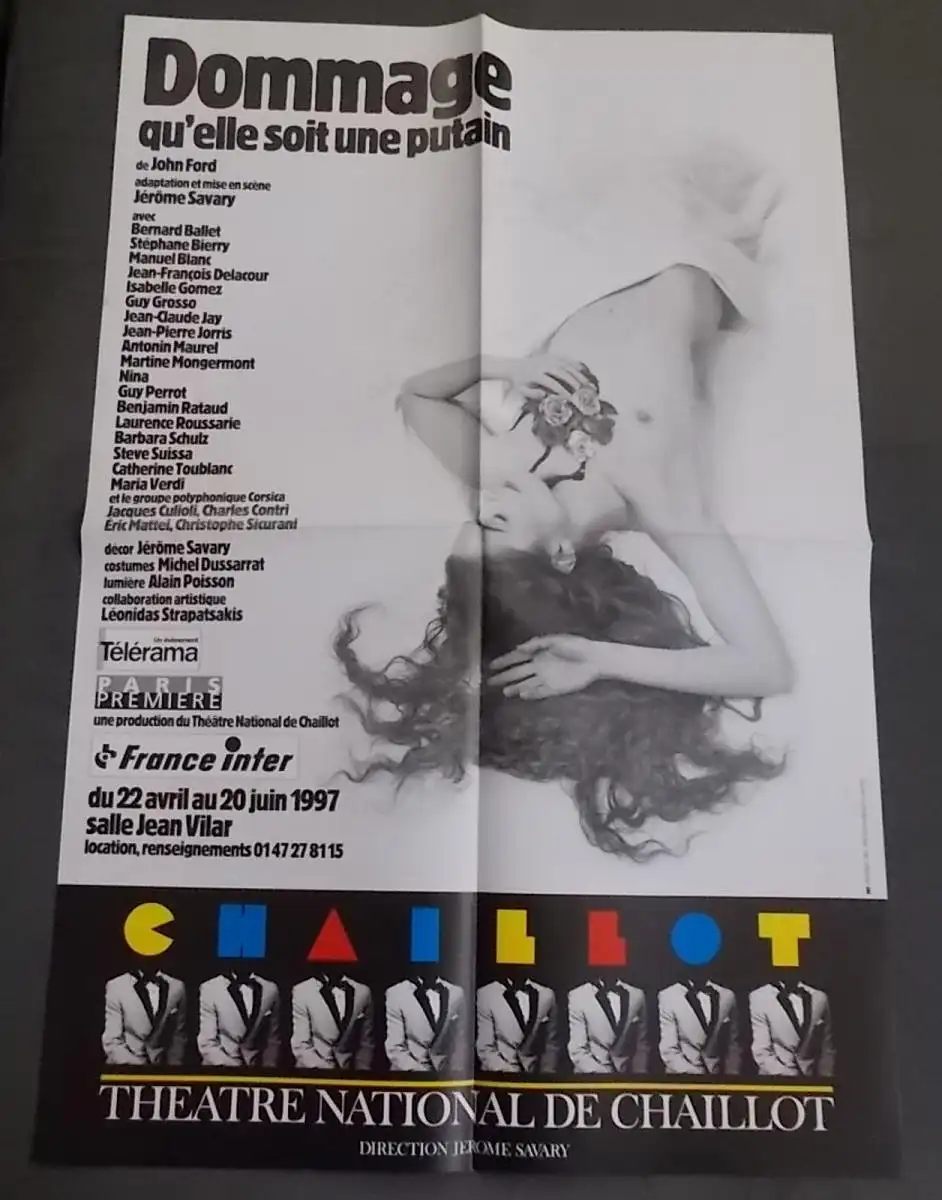 Theatre National de Chaillot, Jerome Savary: Programmheft Theaterplakat John Ford DOMMAGE QU'ELLE SOIT UNE PUTAIN Premiere 22 avril 1997.