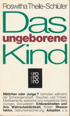 der Einband und die Seiten sind teils fleckig, Einbandkanten teils bestoßen, Dr. med. Roswitha Theile-Schlüter beantwortet in diesem Buch die Frage, die sich alle zukünftigen Mütter und Väter stellen: Was kann ich tun, was muß ich lassen, damit mein Kind gesund zur Welt kommt? (vom Buchrücken) Aus dem Inhalt: Grundlagen und Gesetze der Vererbung - Erbkrankheiten - Erbberatung - Keine eigenen Kinder - Zukunftsgedanken - Vom Ei zum Baby - Gefahren für den Embryo und den Fetus - Schwangerschaft - Beschwerden während der Schwangerschaft - Geburt Beschreibung vom Antiquariat Ardelt 3k5a ISBN-Nummer: 3499169231 Antiquariat Ardelt
