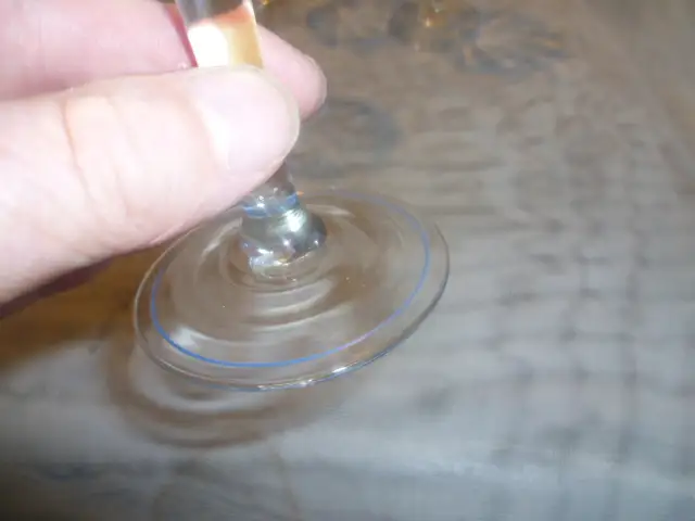 Jugendweinglas für Weißwein oder Cherry,klarer Fuß aus Klarglas Glas Fußscheibe mit blauem Kreis bemalt