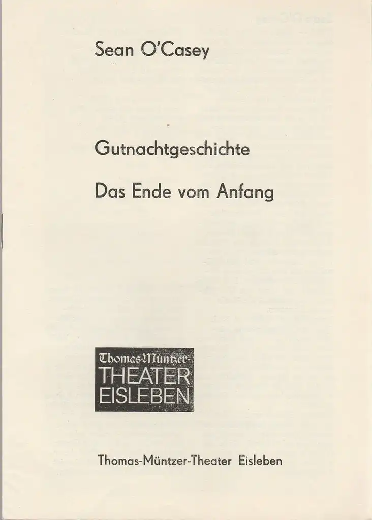 Thomas-Müntzer-Theater Eisleben, Manfred Müller-Kuhl, Michael Kuschnia, Renate Paulus: Programmheft Sean O'Casey GUTENACHTGESCHICHTE / DAS ENDE VOM ANFANG Premiere 23. März 1978 Spielzeit 1977 / 78.