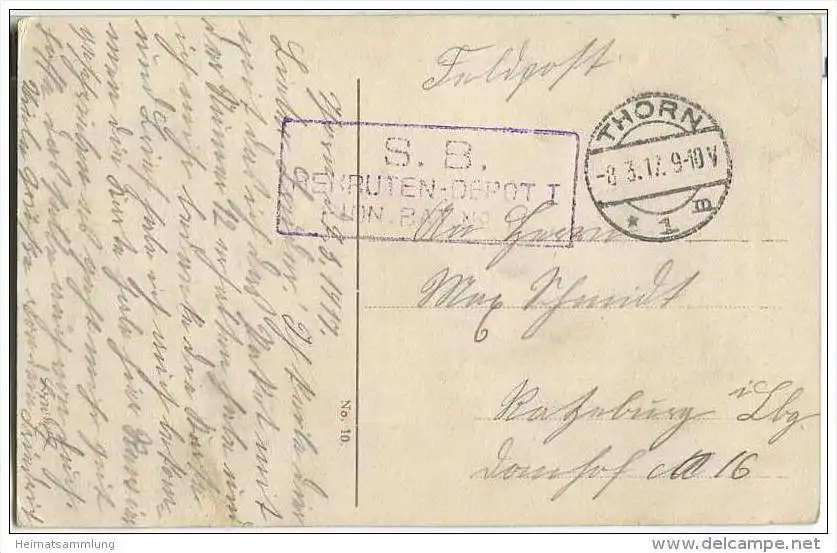 Thorn - Torun - Offizierskasino - Johanniskirche - Feldpost S.B Rekruten-Depot I Pion. Bat. No 17 (G31860) gel. 1917