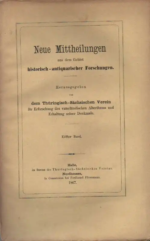 Verlagsort: Halle, im Bureau des Thüringisch-Sächsischen Vereins, Nordhausen, in Commission bei Ferdinand Förstemann, 1867