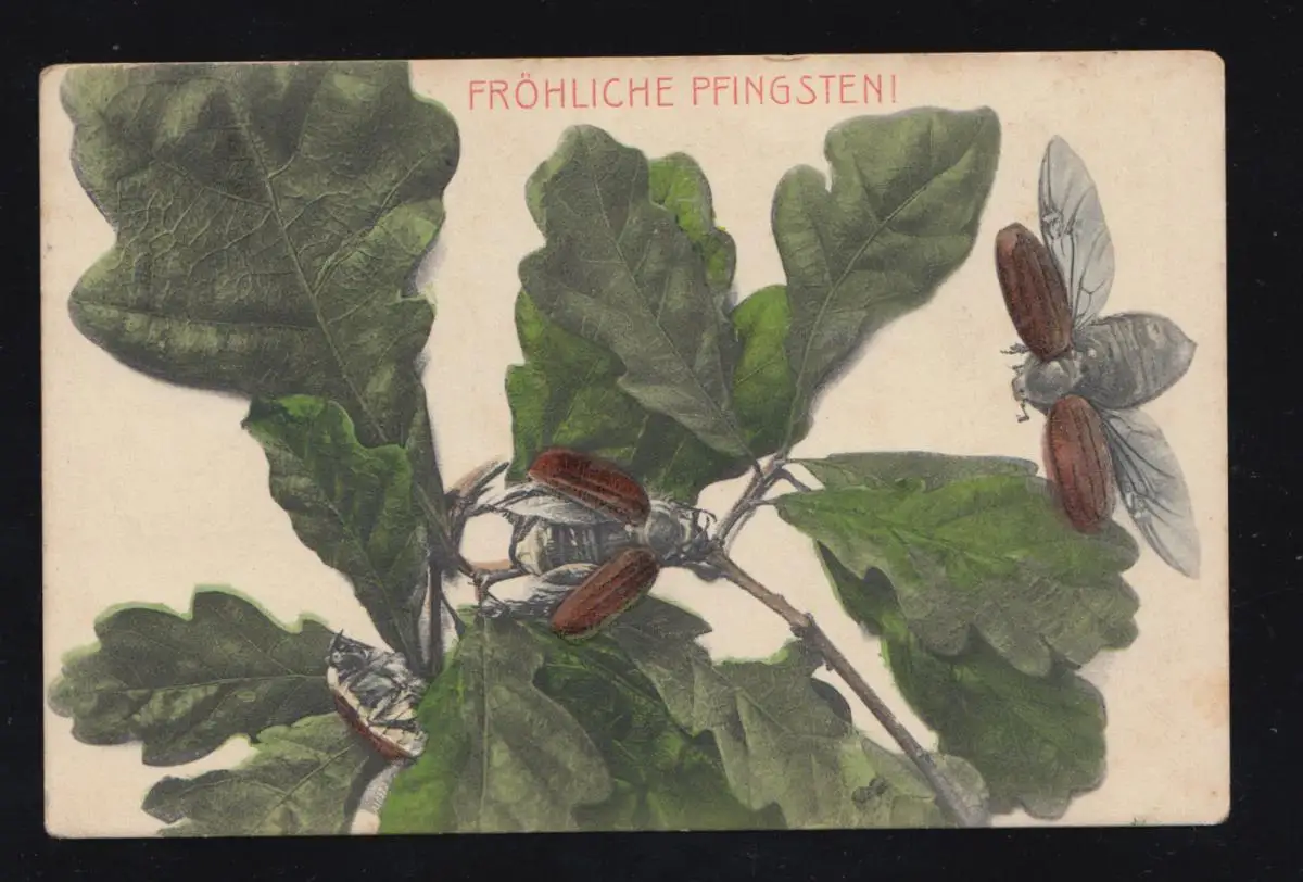 Tiere-AK Pfingsten Maikäfer und Eichenzweig, RASTEDE 24.5.