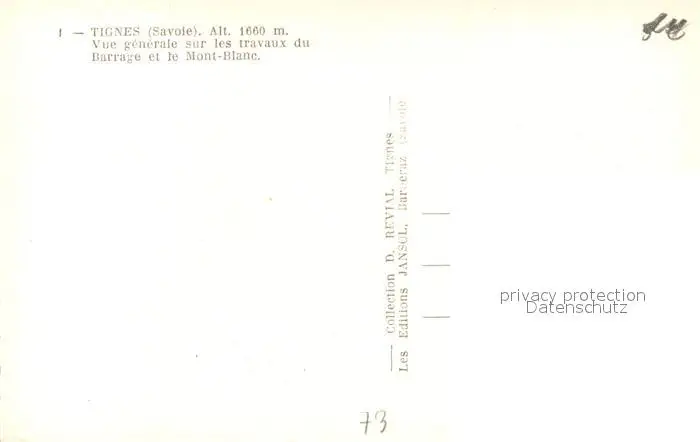 Tignes Vue sur les travaux du Barrage et le Mont Blanc Croix Alpes Francaises Tignes postalisch nicht gelaufen 1921-1965 Erhaltung siehe scans [FriedD77] Frierer