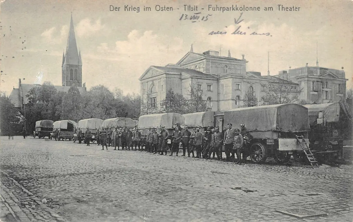 Tilsit Fuhrparkkolonne am Theater Postkarte 1915 Ostpreußen
