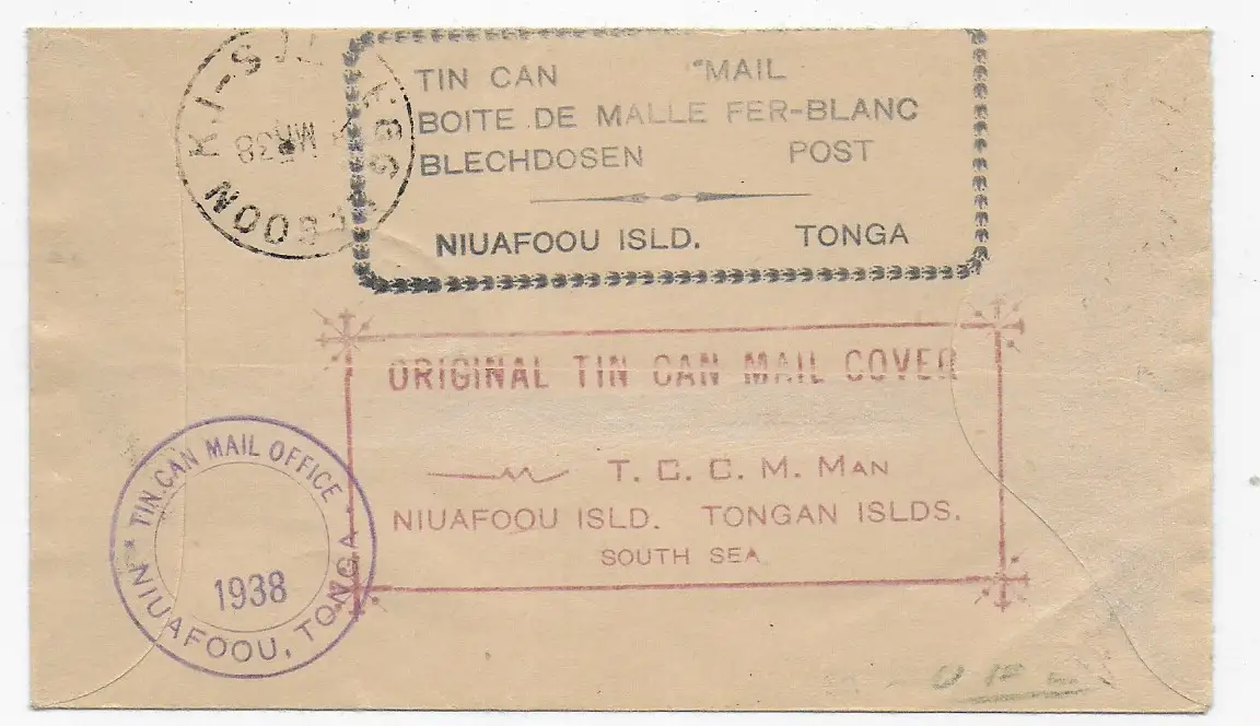 Tin Can mail Niuafoou Island - Tonga 1938