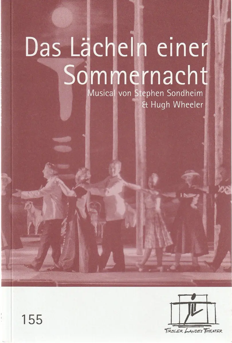 A LITTLE NIGHT MUSIC. Buch von Hugh Wheeler. Musik und Gesangstexte von Stephen Sondheim. Nach einem Film von Ingmar Bergman. Original Broadway Produktion von Harold Prince. Musikalische Leitung: Leif Klinkhardt. Assist. Kappelmeister & Chor: Michael Mader. Inszenierung: Brigitte Fassbaender. Bühne und Kostüme: Bettina Munzer. Mitwirkende: Louise Martini, Lynda kemeny, Alexandra Klee / Katharina Klee, Matteo de Monti, Debra Fernandes, Martin Mitterrutzner / Peter Sonn, Eva Maria Riedl, Michael Wagner, u.a. - Theaterprogramm, Opernprogramm, Ballettprogramm, Musicalprogramm, Konzertprogramm, Theatermemorabilia, Programmhefte Sammlung, deutsche Theatergeschichte.