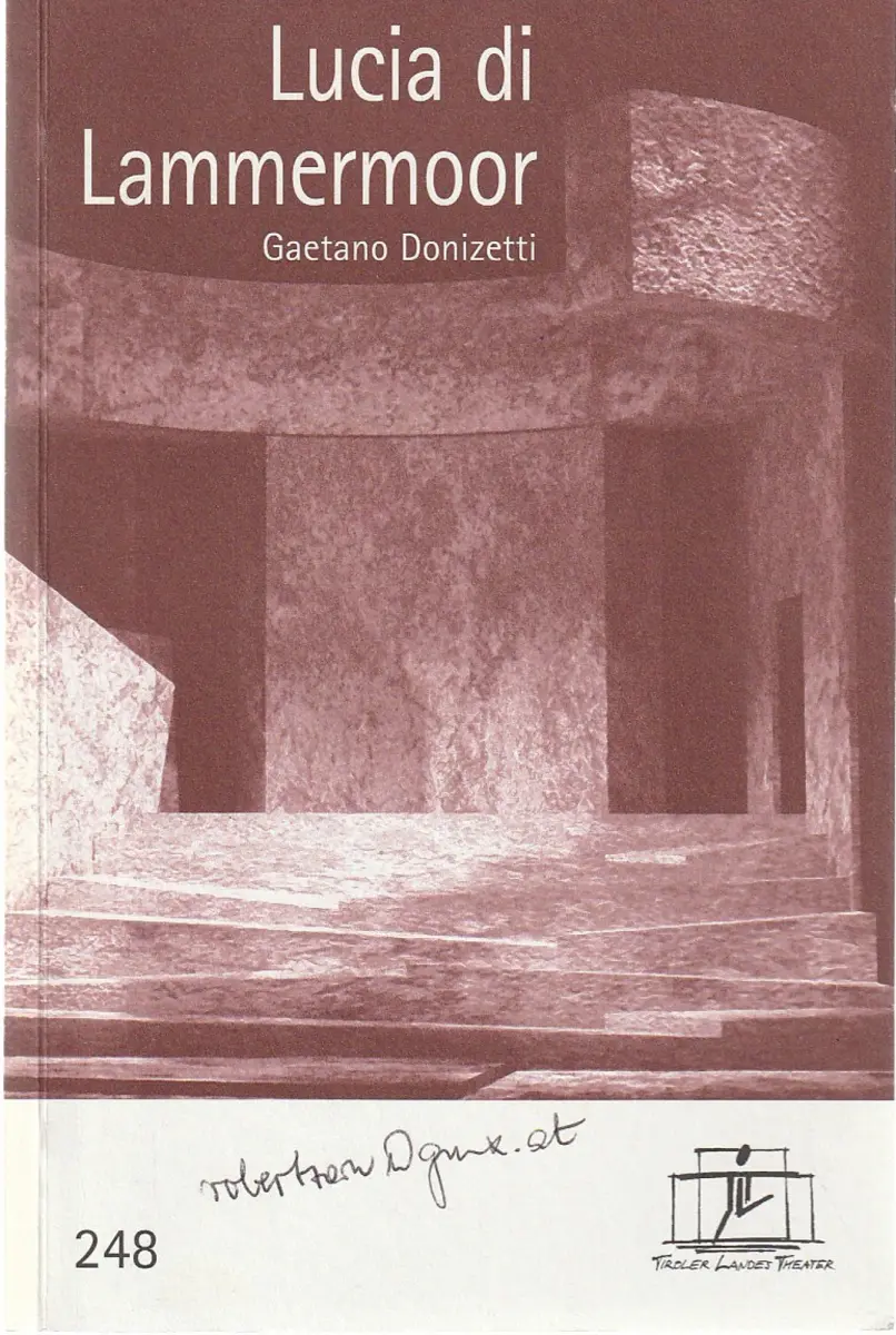 Tiroler Landestheater, Brigitte Fassbaender, Eva Maskus: Programmheft Gaetano Donizetto LUCIA DI LAMMERMOOR Premiere 6. Juni 2010 Spielzeit 2009 / 2010 Nr. 248.