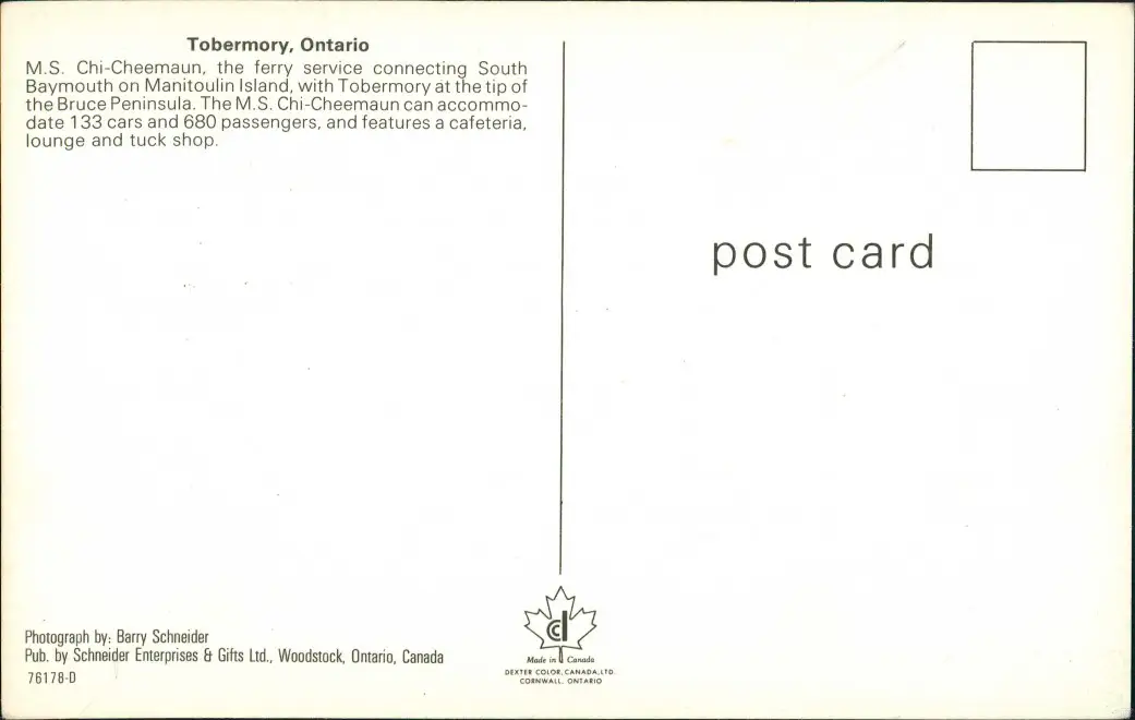 Tobermory M.S. Chi-Cheemaun ferry service Baymouth Manitoulin Island 1970