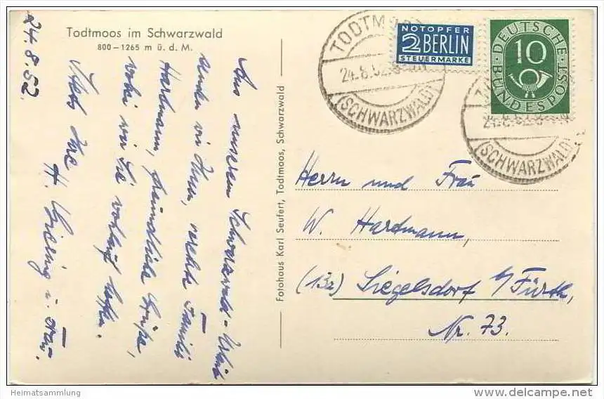 Todtmoos - Foto-AK - Verlag Karl Seufert Todtmoos - kleiner Eckknick oben rechts (E14209) gel. 1952