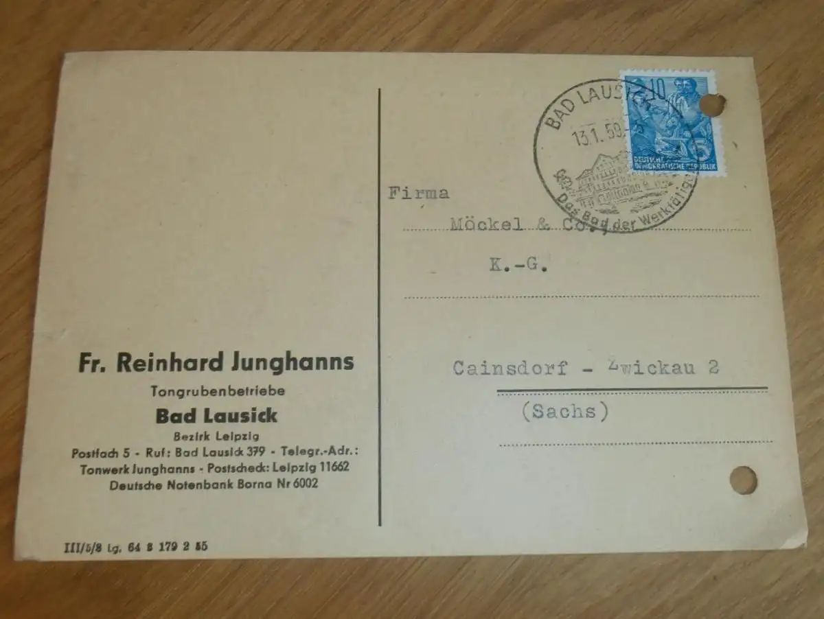 Tongrube Reinhard Junghanns in Bad Lausick b. Leipzig ,1959, Ganzsache , Reklame / Werbung , Ansichtskarte , Postkarte !AZ-WR/1d