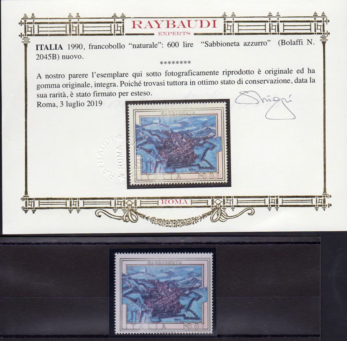 Touristica '90 Sabbionta hellblau Sorte Naturmarke Vollgummi MNH - Touristica '90 Sabbionta hellblau - Naturmarke (Kat. Bolaffi Nr. 2045 B) - Selten - Zert. Ray. oro Cod. 667/15