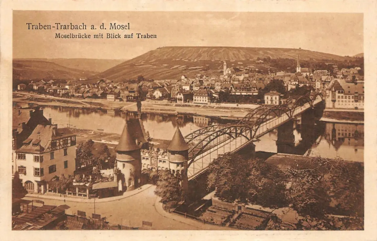 Traben-Trabach a. d. Mosel Moselbrücke mit Blick auf Traben Postkarte AK