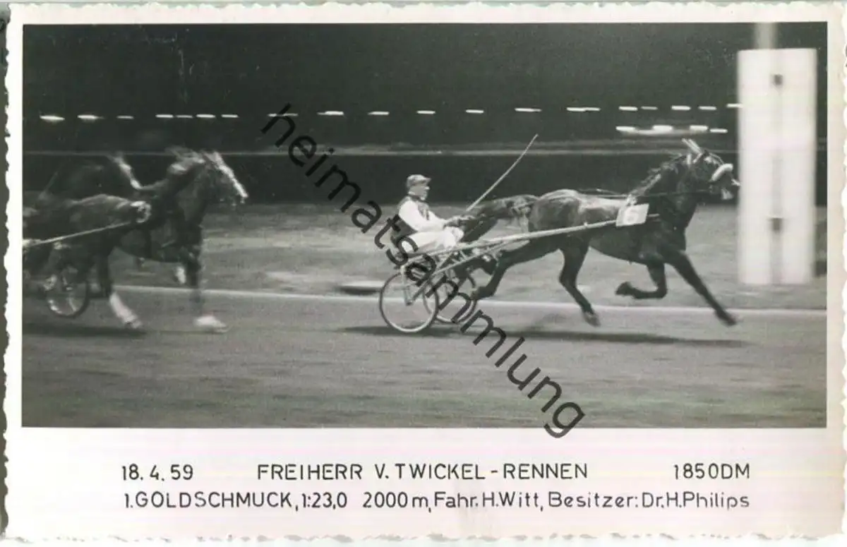 Trabrennen - Freiherr von Twickel Rennen - Goldschmuck - Fahrer Heinz Witt - Besitzer Dr. H. Philips - Foto-AK 18.04.1959 (G5142)