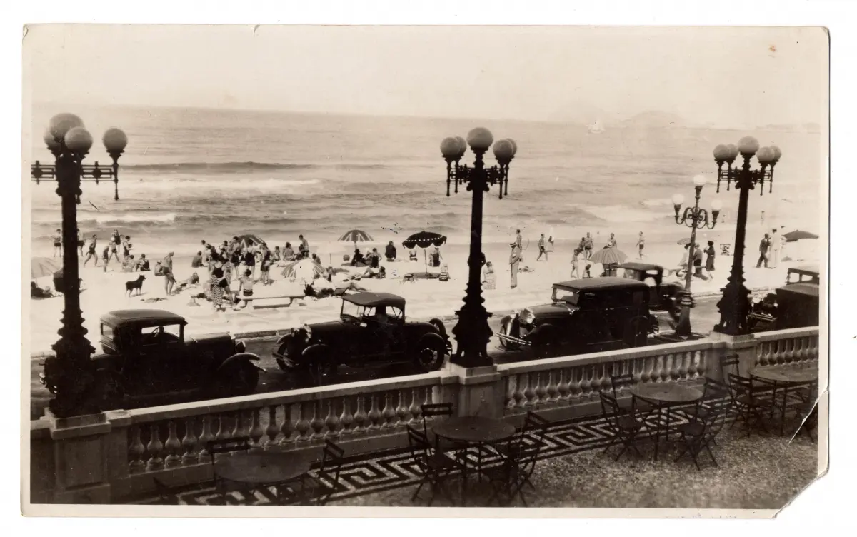 - Transatlantikkreuzfahrt - Fotografie (Strand von Rio de Janeiro) mit lila Stempel auf der Rückseite Telegrafenbüro Rom Aerozona und Handschrift Ein Blick auf Rio de Janeiro Ziel der Atlantikflugzeuge - Ecke unten gerissen - niedliche Nr. 320/19