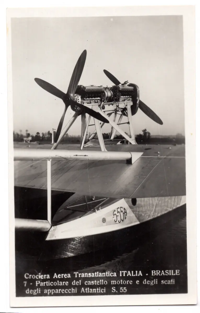 Postkarte - - Transatlantische Flugkreuzfahrt Italien - Brasilien - Fotokarte Motorschloss und Rümpfe der Atlantikgeräte S 55 (A. Traldi Mailand Nr. 7) neu in sehr gutem Erhaltungszustand (Longkatalog Nr. 2282) Cod. 2610/WEB
