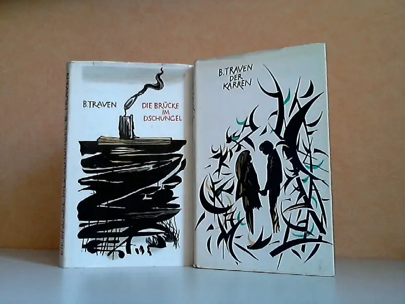 die Umschläge sind altersbedingt fleckig, an denKanten bestoßen, Eigentumsstempel, DIE BRÜCKE IM DSCHUNGEL: In diesem Buch wird alles in sein Gegenteil verkehrt; Geschenke der Liebe kosten das Leben, ein Tanzfest wird zum Totentanz, die Trauer eines Begräbniszuges schlägt um in Ausgelassenheit und Clownerie. Es gibt wenige Kunstwerke, in denen 1 Grauen, Liebe und Tod so schroff nebeneinander gestellt sind. Als Die Brücke im Dschungel" 1929 in :r Büchergilde Gutenberg veröff entlicht wurde, verglich ein Rezensent den Roman mit Gemälden von Otto Dix. Das ist ein treffender Vergleich. Die gleiche Härte, die gleiche Entschiedenheit ist in dem Werk Travens. Das Kind, das während eines Tanzfestes irgendwo im Dschungel von einer geländerlosen Brücke fällt und unbemerkt ertrinkt, er verunstaltete Leichnam, die Angst, der Schmerz und die Verzweiflung der Mutter, die Anteilnähme der Nachbarn und die Unbeholfenheit des jungen Lehrers am Grabe - das ist alles mit höchster. fast schon übertriebener Genauigkeit aufgezeichnet. Aber es stößt nicht ab; es erschüttert und ergreift den Leser. ... DER KARREN: Der Verfasser des Buches hat, mit einigen kurzen Unterbrechungen, allein, ohne die Begleitung irgendeines Mannes seiner Rasse, mehr als zwei Jahre in jener Region verbracht, hat hier gelebt, gewohnt. getanzt, gesungen, gewandert mit Indianern, Maultiertreibern, Carreteros, hat kranke Indianer und Indianerinnen kuriert, schwangeren Indianerfrauen geholfen, kleine Indianersäuglinge glücklich zur Welt zu bringen, hat Indianerhochzeiten geregelt urd mit jungen Indianermädchen nachts, mit und ohne Mondschein, unter Bäumen gesessen, und auch nicht gesessen. Er war abgeschnitten selbst von der iürftigsten Zivilisation, soweit er sie nicht in seinen wenigen Packen mit sich führen konnte, in Gestalt von Zahnputzcreme und Rasierklingen. Er gewann hier die schwer zu erlernende Fähigkeit, sich das laar selbst und sehr geschickt zu schneiden, yes, Sir. Er tat dies alles nicht aus Abenteuerlust... Der Verfasser tat dies alles zu keinem anderen Zwecke, als um die Daten für dieses Dokument und für weitere Dokumente heranzuschaffen; denn der Verfasser schreibt keine Märchen für Erwachsene, damit sie leichter einschlafen können ..." (vom Umschlag) Beschreibung vom Antiquariat Ardelt 1j7b Antiquariat Ardelt