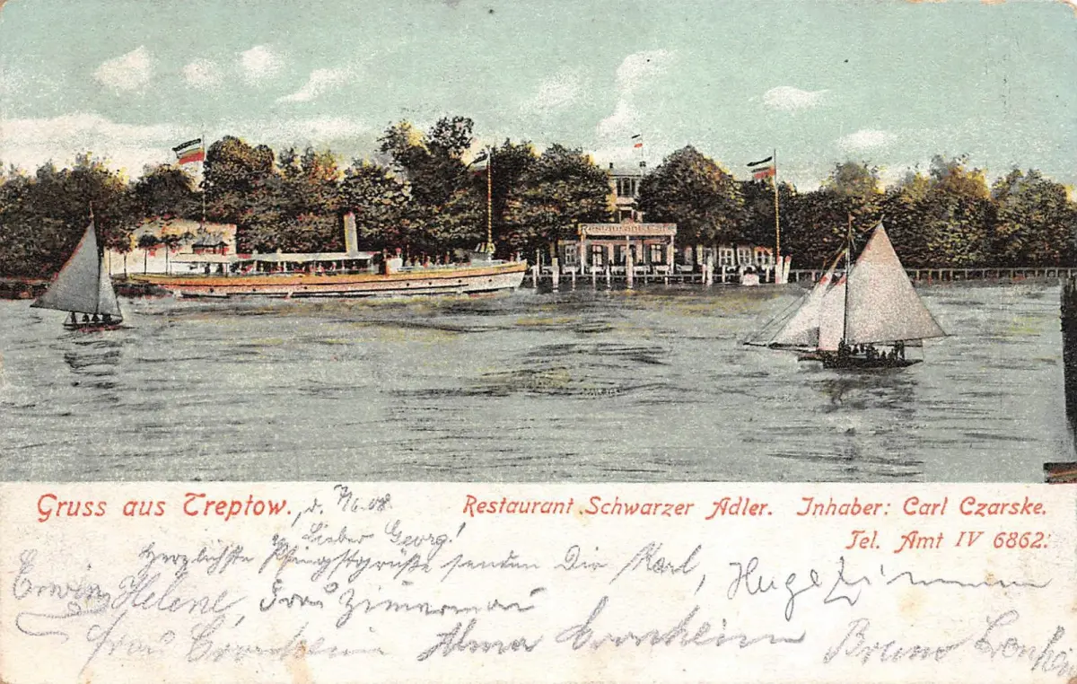 Treptow Restaurant Schwarze Adler Postkarte 1908