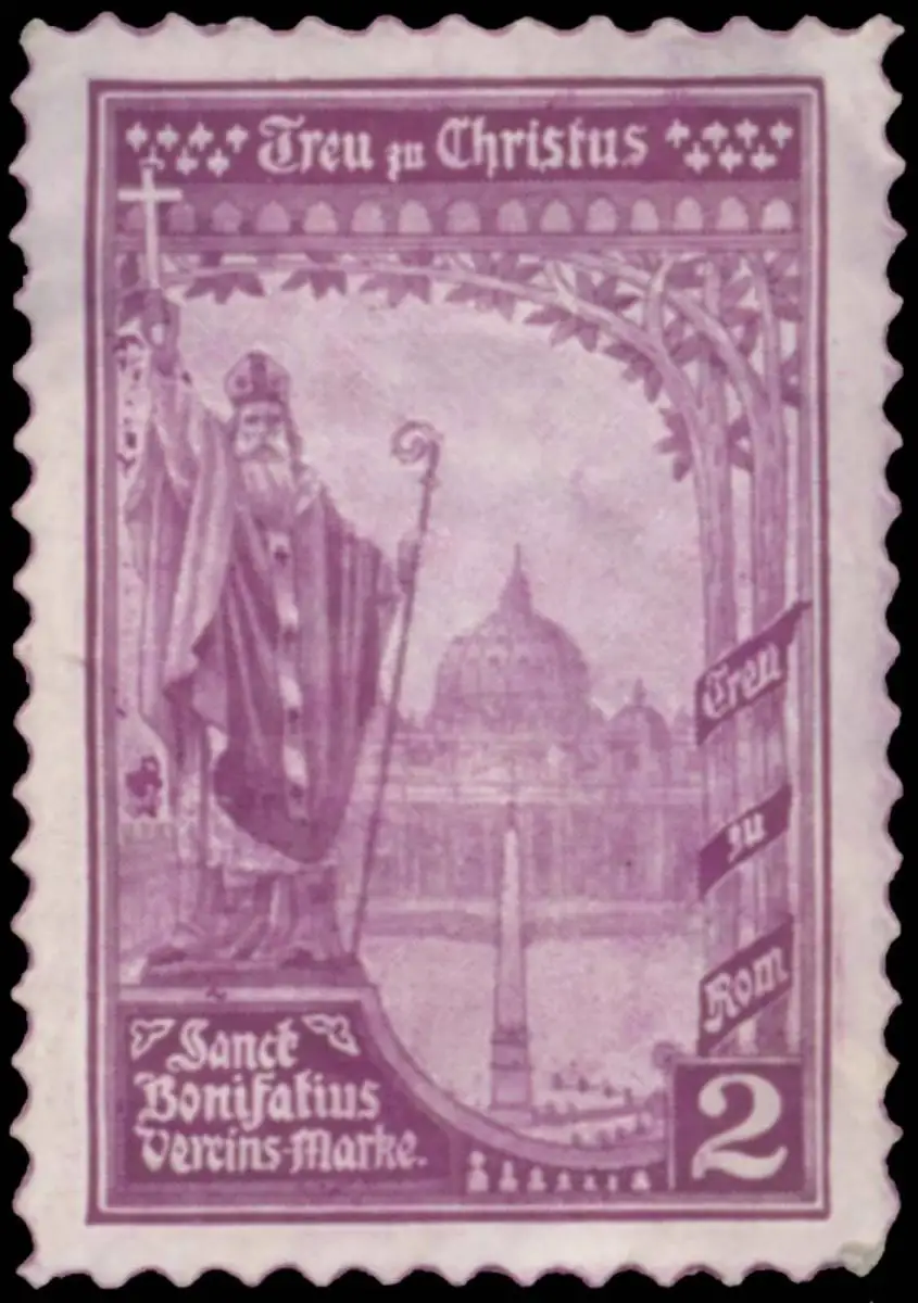 Sankt (St.) Bonifatius Vereinsmarke, Spendenmarke, Wehrschatzmarke, Kirche, Größe/Zustand: 3x2 , beschädigt, Original alte Reklamemarke die seinerzeit für die Werbung benutzt wurde