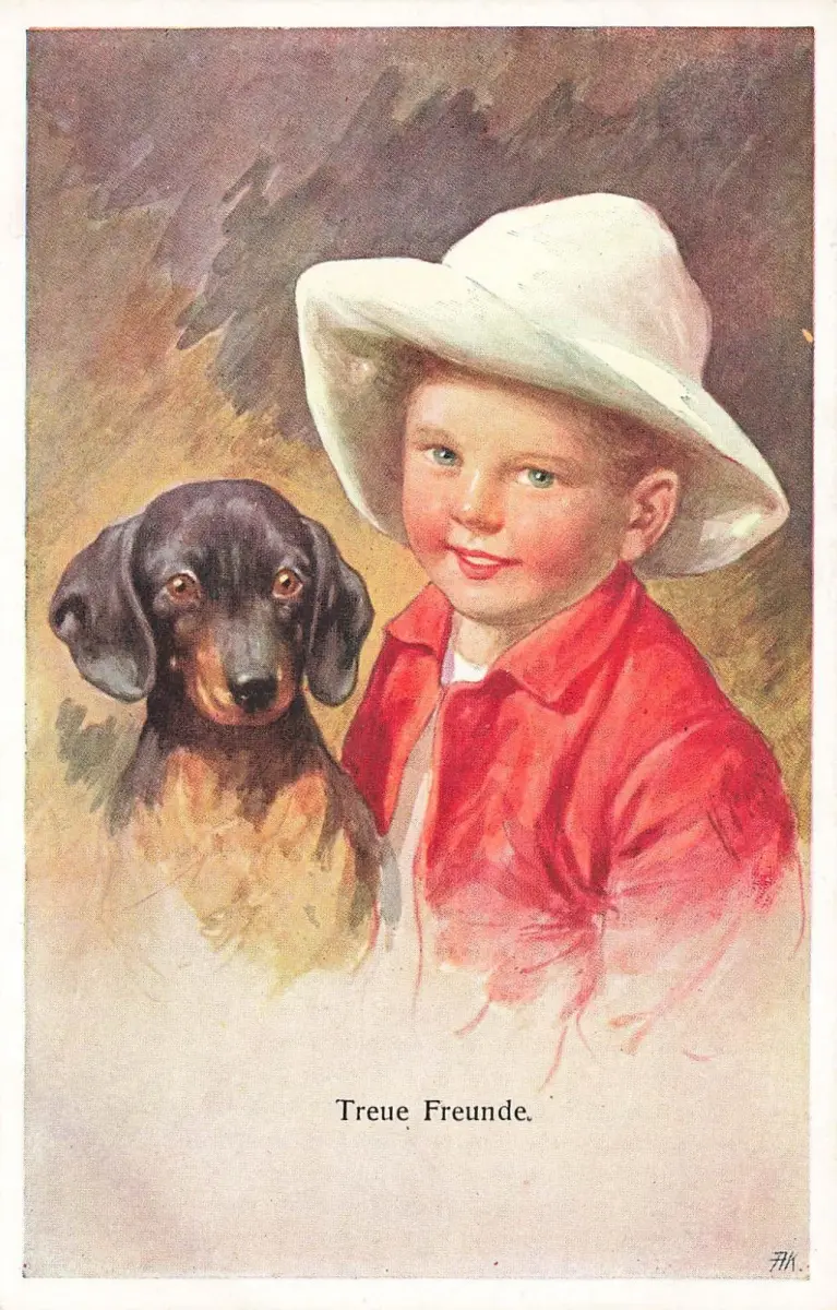 Treue Freunde Dackel Künstlerkarte K. Feiertag Nr 5