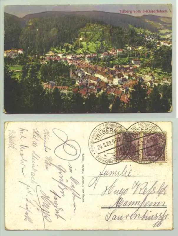 Artikelbeschreibung u. Zustand : Siehe Scan / staerker gebraucht. Weitere Infos : Ansichtskarte. PLZ-Bereich pauschal 78098. Postalisch gelaufen 1922 mit huebschem Sonderstempel