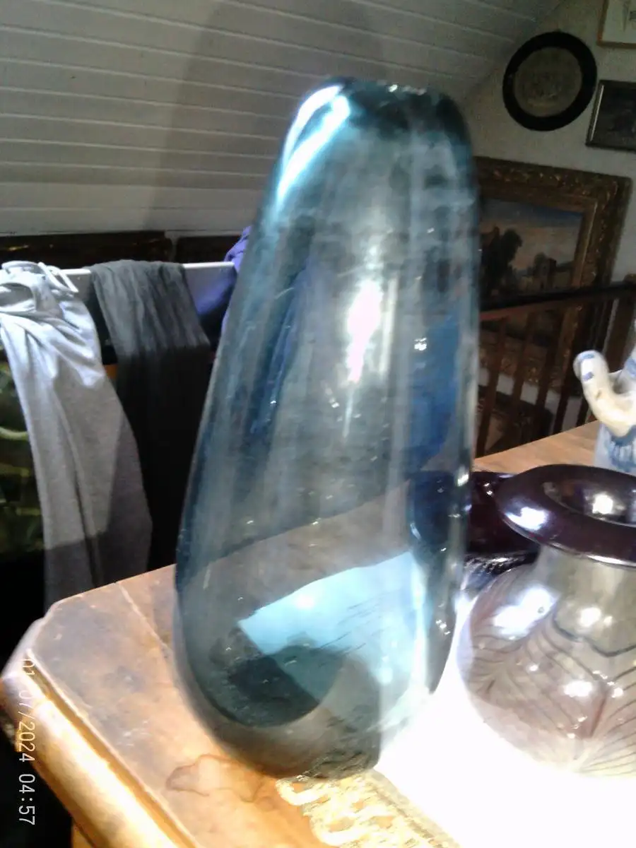 Trichtervase WMF Perlora blau, Entwurf Walter Dexel, 1950/60er, Ø 20 x 9 cm, ca700 g gute Erhaltung !