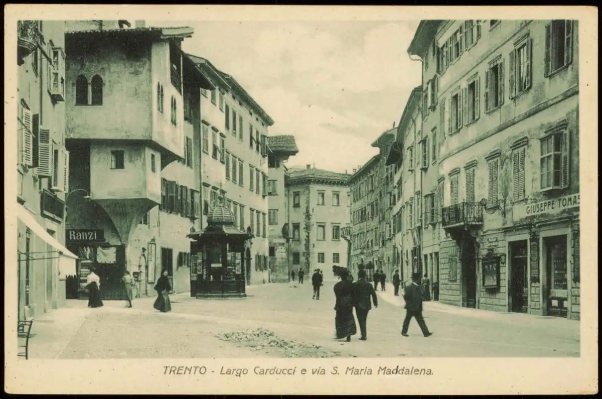 Trient Trento Straßen-Ansicht, Largo Carducci e via S. Maria Maddalena 1910