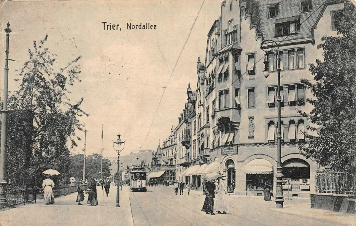 Trier Nordallee Straßenbahn Postkarte AK