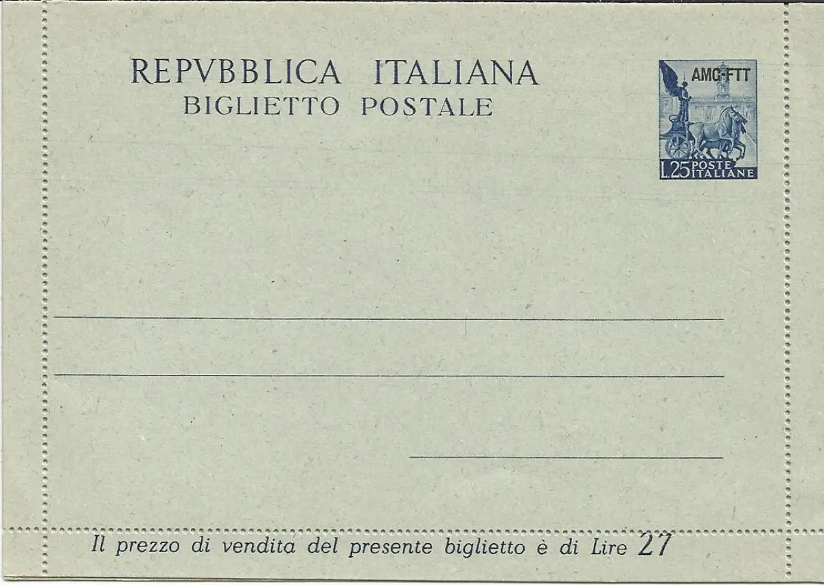 Triest A - B.P. Lire 25 Quadriga Nr. B 6 neue Postkarte - Triest A - B.P. Lire 25 Quadriga Nr. B 6 neu einwandfrei Code Nr. 874/4