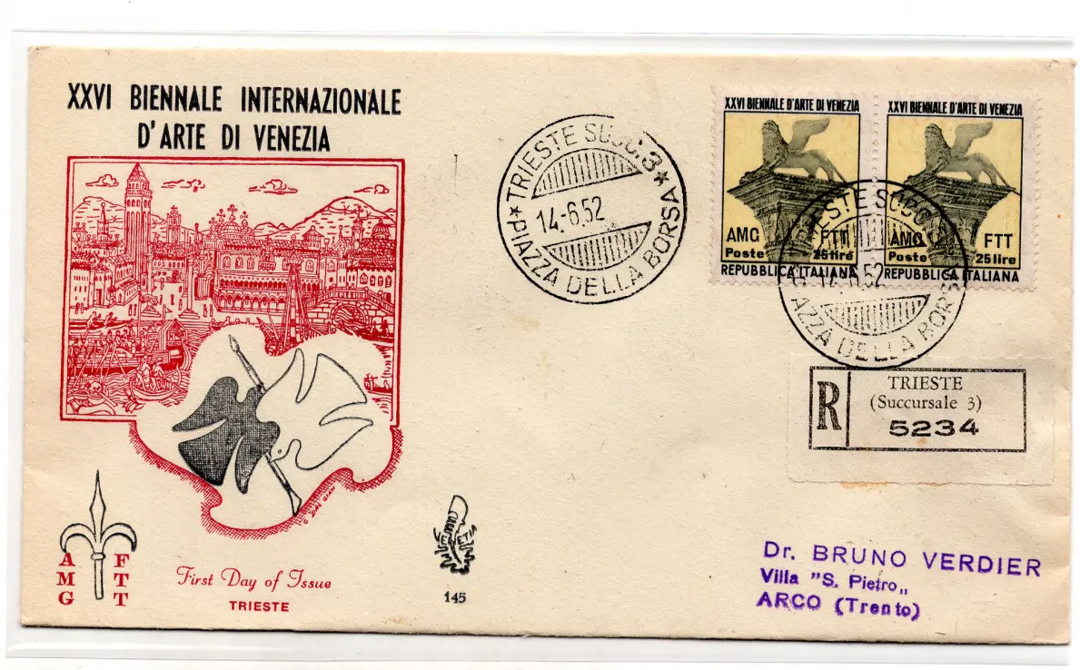 Umschlag - Biennale von Venedig Nr. 150 Paar auf Umschlag Racc. mit Ankunftsstornierung Cod. 573/17