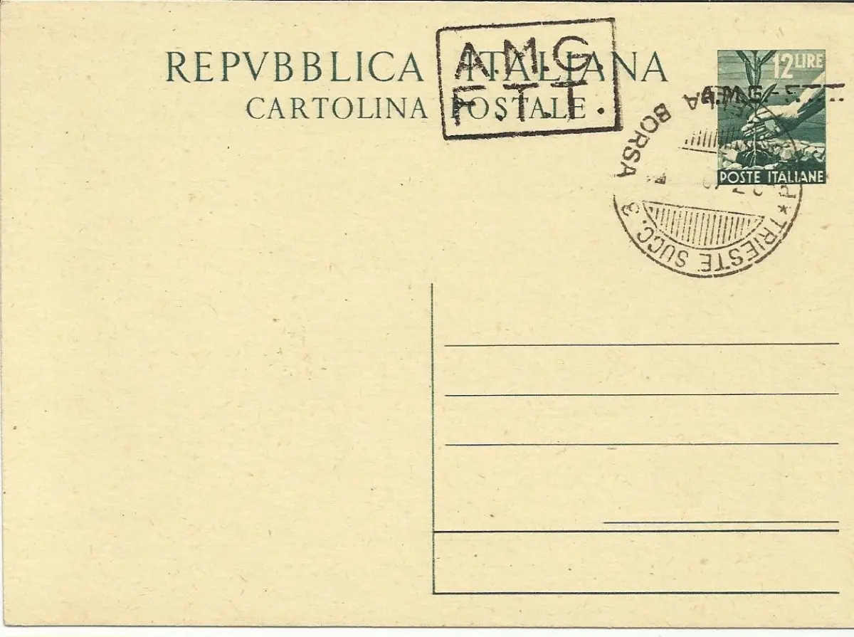 Triest A - C.P. Lire 12 Democratica Nr. C 3B (sz. A+B) - gebrauchte Postkarte - Triest A - C.P. Lire 12 Democratica Nr. C 3B (sz. A+B) - gebraucht, nicht gereist - Kat. 25 Code Nr. 808/4