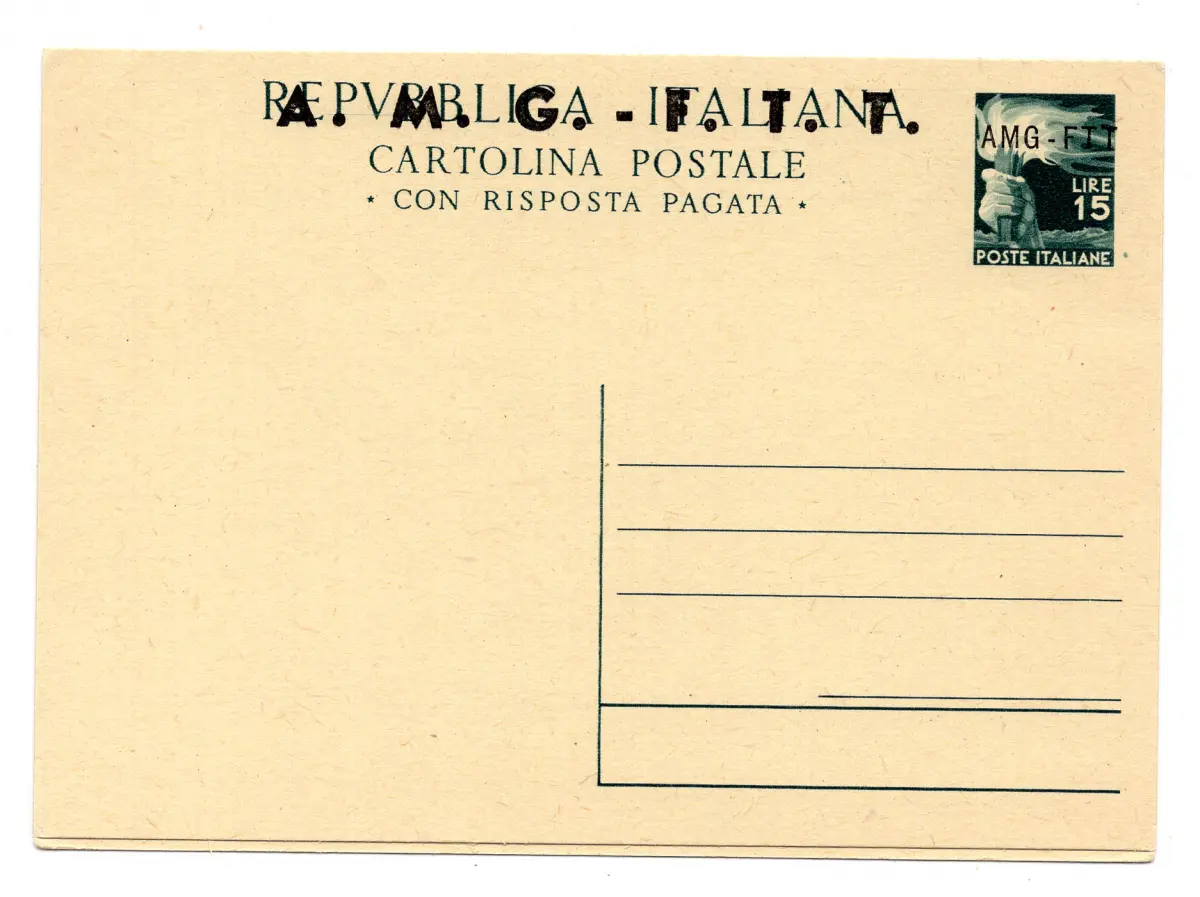Triest A - C.P. Lire 15 Democratica und Lire 15 + 15 mit großem Aufdruck (Nr. C10 / C11) - Triest A - C.P. Lire 15 Democratica und Lire 15 + 15 mit großem Aufdruck (Nr. C10 / C11) die beiden perfekten neuen Postkarten - Kat. euro 85 n. 1374/20