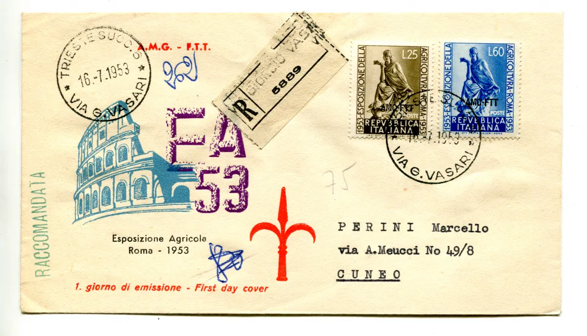 Umschlag - Triest A - Landwirtschaft Nr. 182/183 Serie auf FDC-Umschlag Rote Lilie gereist eingeschrieben - Schön und ungewöhnlich Cod.1454/WEB
