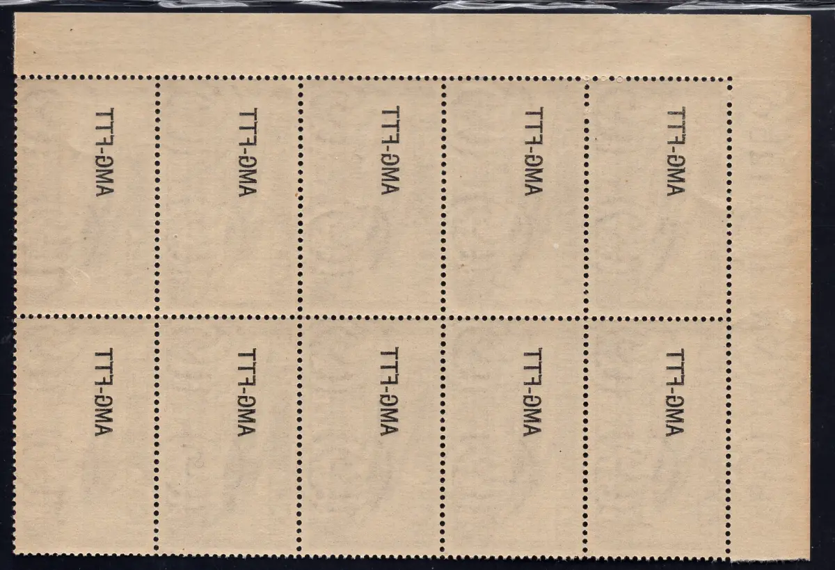 MNH - Vollgummi - Triest A - Luftpost Lire 25 Nr. 21h Zehnblatteckblock mit scharfem Abziehbild komplett vom Aufdruck, neu einwandfrei mit Vollgummi - unterboten - Kat. euro 80 Cod. 3156/WEB