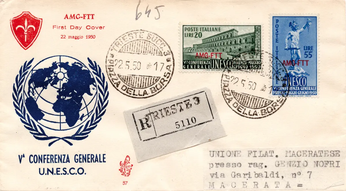 Umschlag - UNESCO Nr. 71/72 Serie auf Umschlag Racc. für Macerata mit Ankunftsstornierung Cod. 554/17