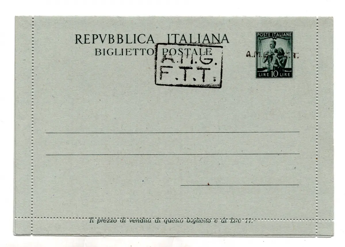 Triest A - B.P. Lire 10 Democratica Nr. B1 mit Handaufdruck A + B - neu - Triest A - B.P. Lire 10 Democratica Nr. B1 mit Handaufdruck A+B - postfrisch einwandfrei - Selten - Kat. euro 100 n. 1388/20