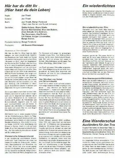 Troell, Jan (Regie) und Halldoff, Jan (Regie): Konvolut: Jan Troell (Regie) - Programmheft zu 'Här har du ditt liv' (Hier hast du dein Leben), 1967 / Film in Sweden, Heft 3,1966-67 / Biographie Ulla Sjöblon / 7 schwarz-weiße Szenenfotos // Jan Halldoff (