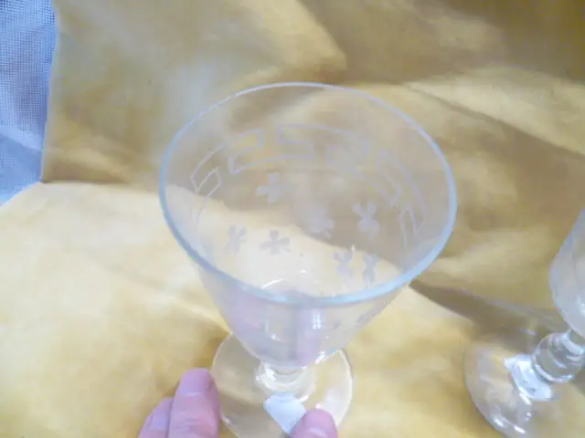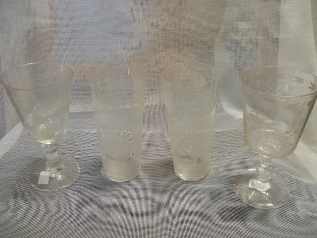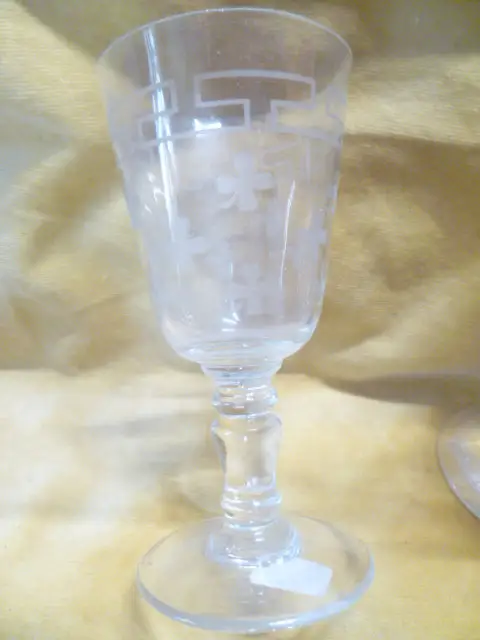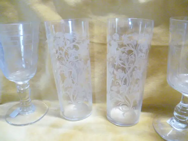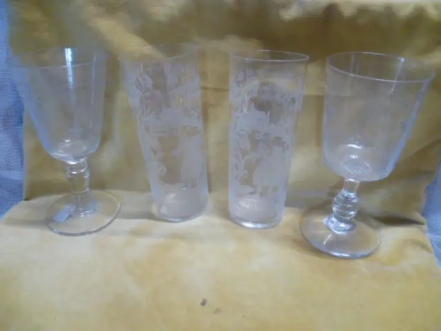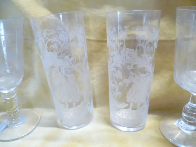 Trompeter von Säckingen 2 Kristallgläser Äzdekor um 1880 und Biedermeier um 1840-1870 Gläser feines Schliffdekor Glücksklee etc