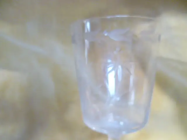 feiner Schliffdekor auf der KUPPE mit vielen Glückskleeblättern oberhalb ist ein geometrisches Dekorband